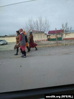 Собеседник отправил в редакцию «Озодлика» несколько фотографий, на которых запечатлены учителя, занимающиеся уборкой улиц.