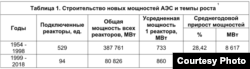 В период интенсивного развития ежегодный рост совокупных мощностей атомной энергетики в среднем составлял 28,4% (8,6 ГВт), а за последние 20 лет аналогичный показатель составил всего лишь менее 1% (4 ГВт).