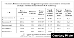 В нижеследующей таблице приведены примеры по тарифам, утвержденные Федеральной антимонопольной службой РФ, некоторых энергоблоков АЭС и объемам их выручки от продаж электроэнергии и мощности в рамках механизма ДПМ по итогам 2018 года.