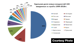 (32,5 ГВт) будет построено в 5 странах – в Китае, Южной Корее, России, Индии и ОАЭ. Строительные работы осуществляются в 4 странах (ОАЭ, Турция, Белоруссия и Бангладеш) ранее не имевших АЭС. При этом, в реализации проектов АЭС в трех последних странах заинтересована Россия, которая осуществляет экспорт технологий и предоставляет экспортные кредиты/ПИИ в размере более 43 млрд. долларов США.