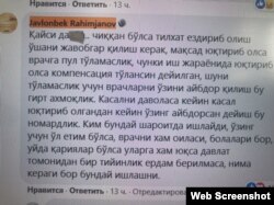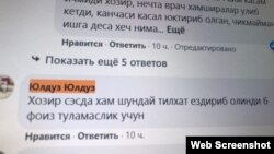 Количество комментариев под этим постом в группе Диалог с народом в Facebook'е превысило 800. Некоторые комментаторы написали, что аналогичная ситуация складывается и в других больницах Ташкента.
