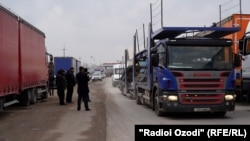 Десятки грузовых автомобилей стоят в километровой очереди у контрольно-пропускного пункта «Фотехобод-Ойбек» на таджикско-узбекской границе.