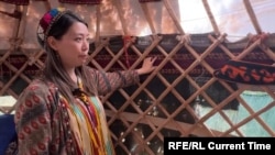 «Сейчас я тку ковер под названием беттерме. Он размещается над решеткой в юрте», – показывает японка свою работу.